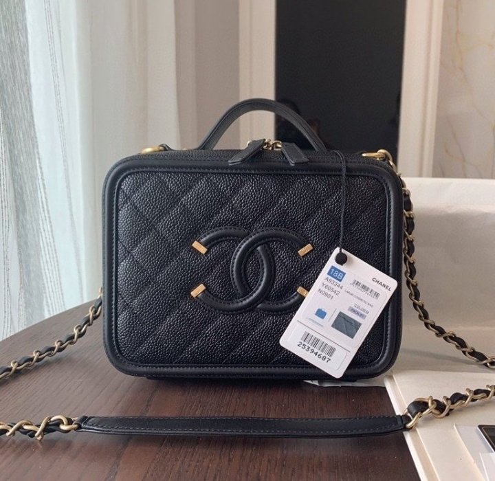 / [국내배송]샤넬 코스메틱 케이스 미듐 캐비어 블랙 금장 A93343
