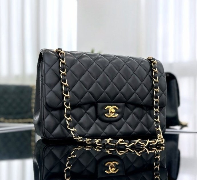 [국내배송]샤넬 클래식 플랩백 램스킨 블랙 금장 라지 A58600
