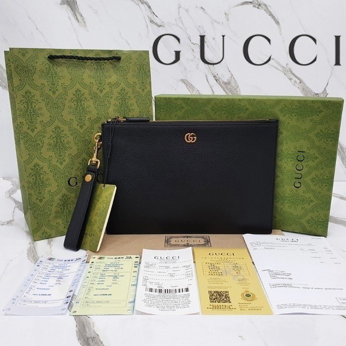 🔘색상 : 블랙 🔘사이즈 : W30.5cm x H21cm 🔘기타정보 : -제품 NO. 475317 -남/여공용 클러치백 -소재 최고급 소가죽 -스트랩 탈/부착 가능 -본품+더스트+박스+책자+영수증+쇼핑백 풀구성