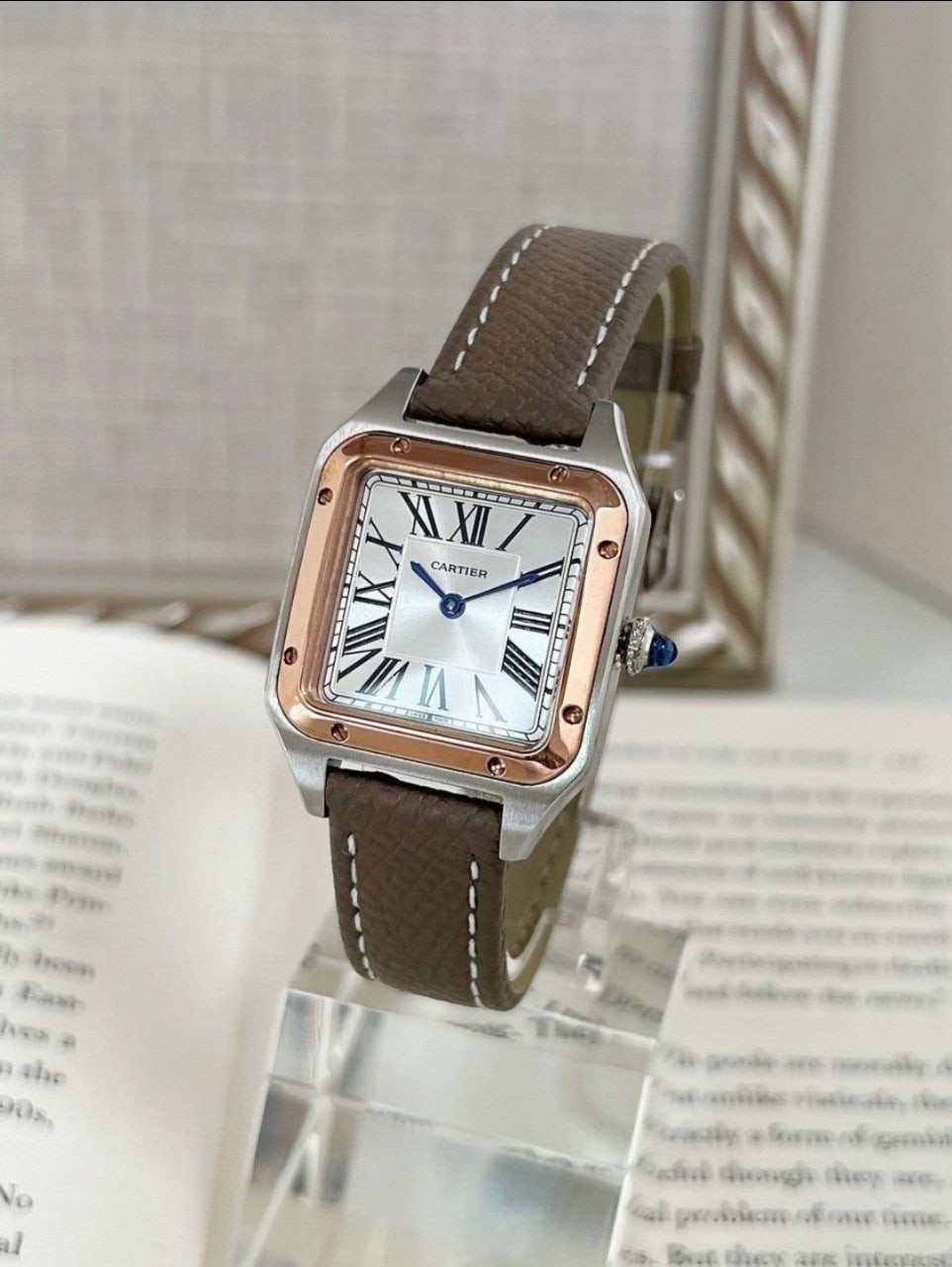 ●까르띠에(CARTIER) 산토스 뒤몽 워치 로즈골드 콤비 ●싸이즈 25mm(용두제외) ●무브먼트 쿼즈 ●사파이어 글래스 ●소가죽 브라운 스트렙