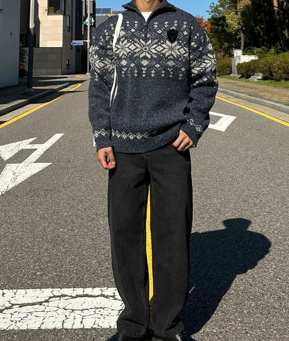 / [국내배송]노비스 눈꽃 노르딕 반집업 니트