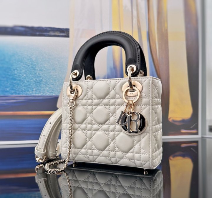 / [국내배송]디올 투톤 레이디백 미니 램스킨 화이트&블랙