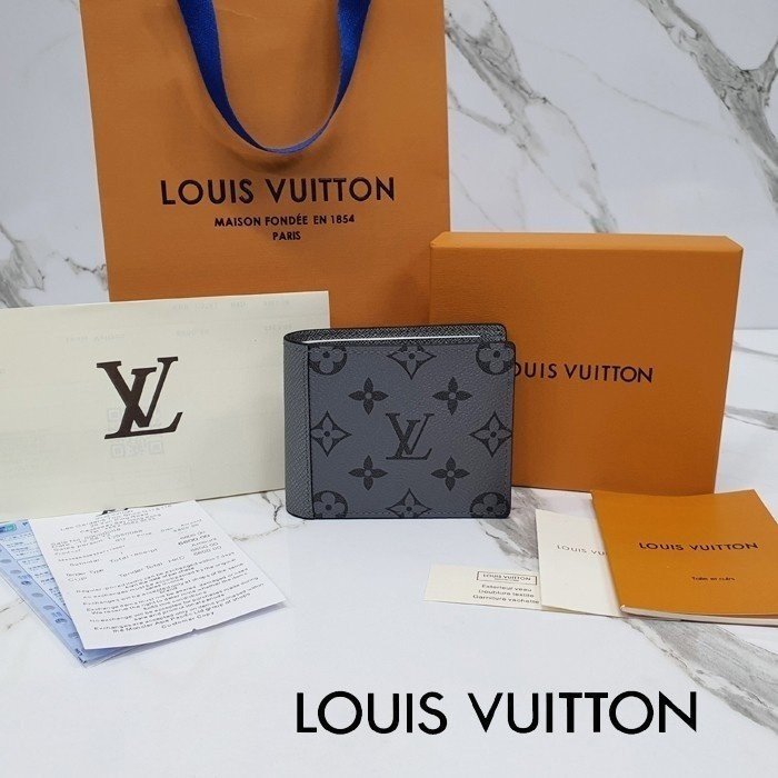 🔘색상 : 메탈실버 🔘사이즈 : W11.5cm x H9cm 🔘기타정보 : -제품 NO. M30843 -남성용 반지갑 -소재 모노그램 캔버스/최고급 소가죽 -포켓 지폐2/카드5/보조2 -본품+더스트+박스+책자+영수증+쇼핑백 풀구성