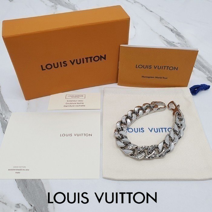 🔘색상 : 실버 🔘사이즈 : free 🔘기타정보 : -제품 NO. M69989 -남성용 팔찌 -소재 스틸 / 금속 -총길이 21cm / 폭 1.3cm -무게 65g -손목둘레 18.5cm까지 착용가능 -본품+더스트+박스+책자 풀구성