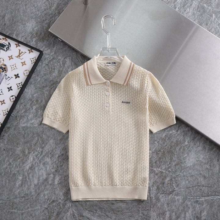 [국내배송]미우미우 여성 린넨 펀칭 카라티셔츠 수량