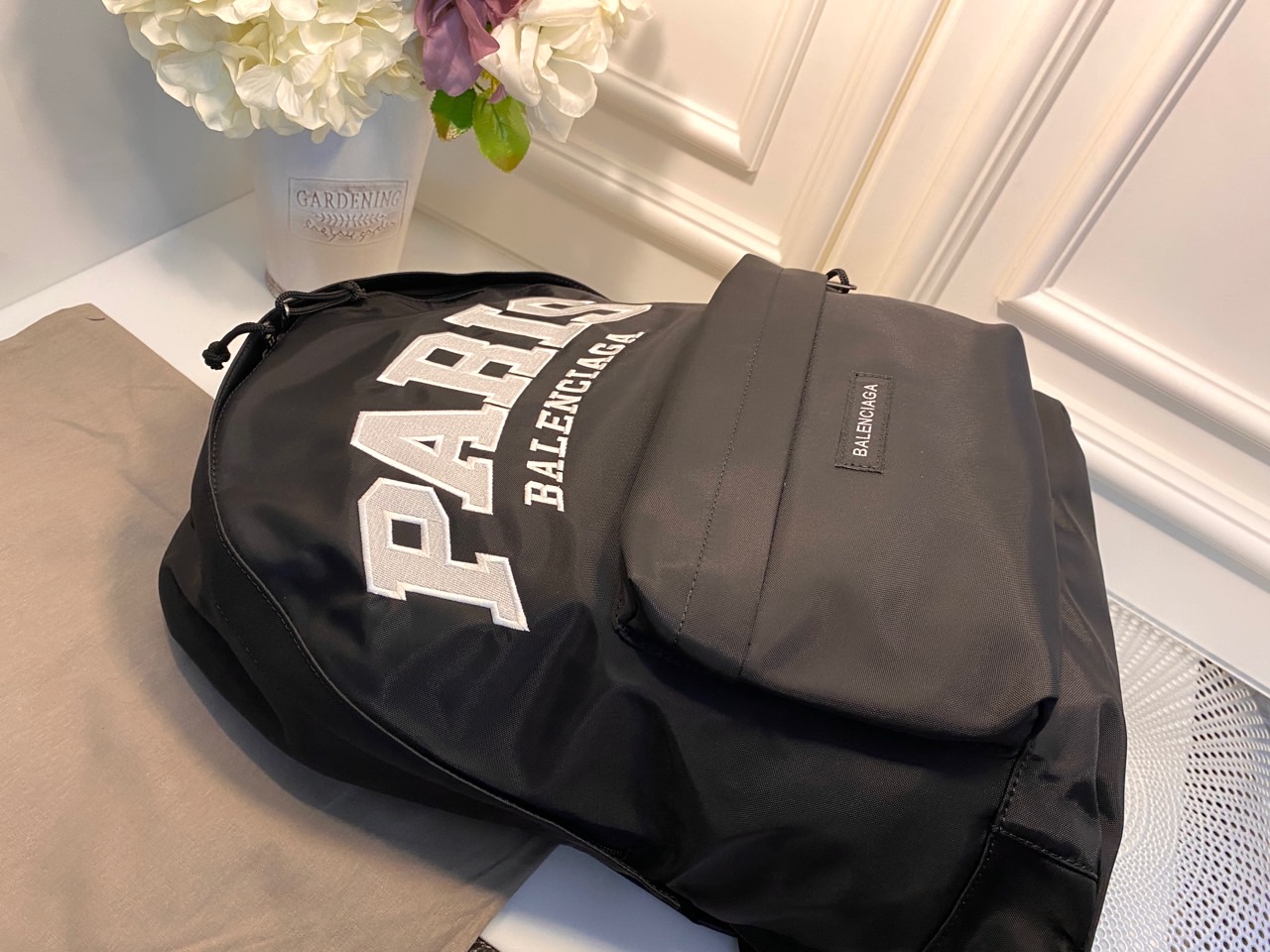 • 탑 핸들 1개 • 길이 조절 가능한 숄더 스트랩 • 앞면에 Balenciaga 자수로고 • 상단에 이중지퍼 잠금장치 • 앞면 지퍼 포켓 • 내부 지퍼 포켓 1개 • 코튼 캔버스 안감
