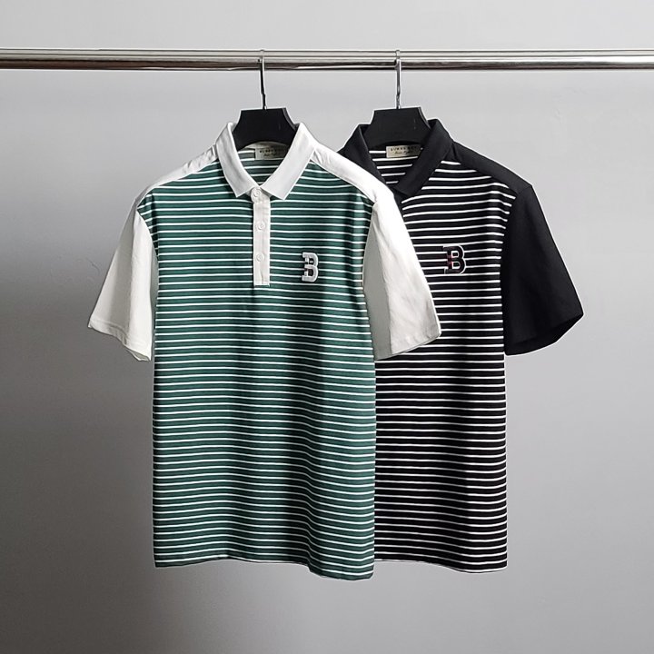 [국내배송]버버리 B자수 스트라이프 반팔 카라티