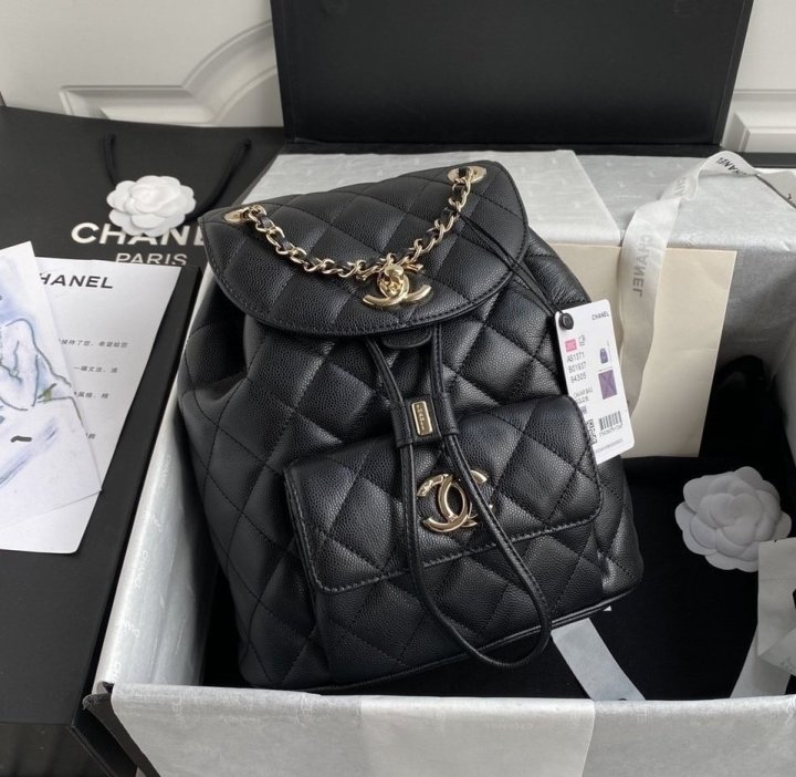 [국내배송]샤넬 듀마 백팩 캐비어 블랙 금장 AS1371