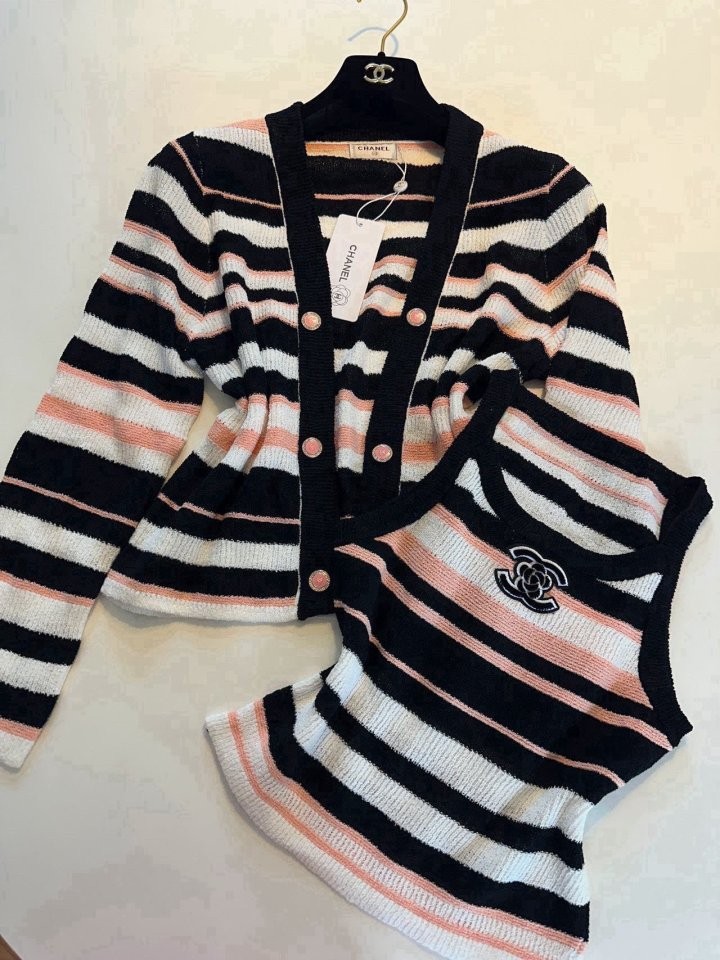[국내배송]샤넬 삼색 단가라 나시 가디건 세트