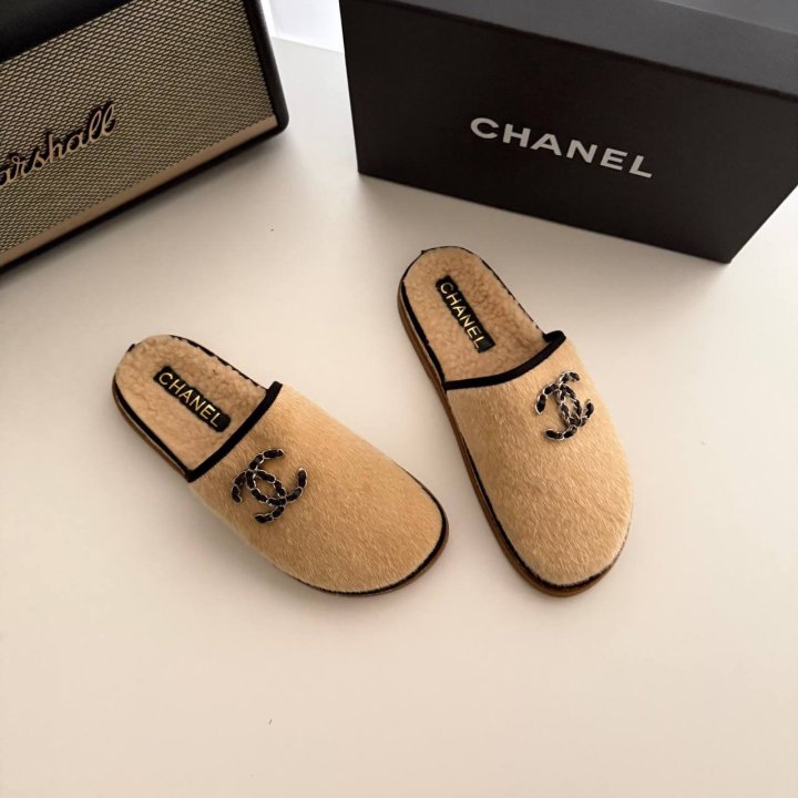 / [국내배송]샤넬 체인 CC 로고 시어링 스웨이드 뮬 슬리