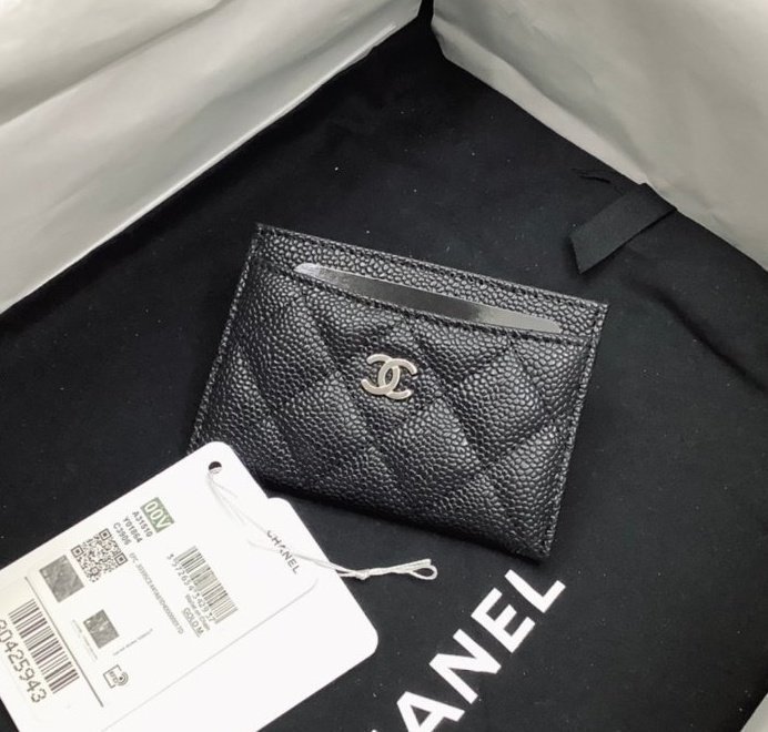 [국내배송]샤넬 클래식 캐비어 카드홀더 블랙 은장 AP0213