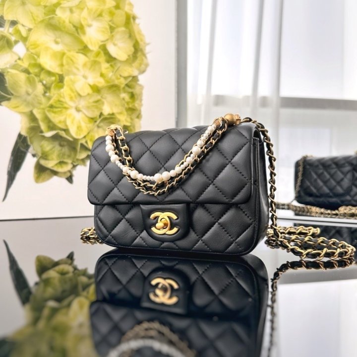 / [국내배송]샤넬 24SS 펄 미니 플랩백 블랙 금장 AS4384