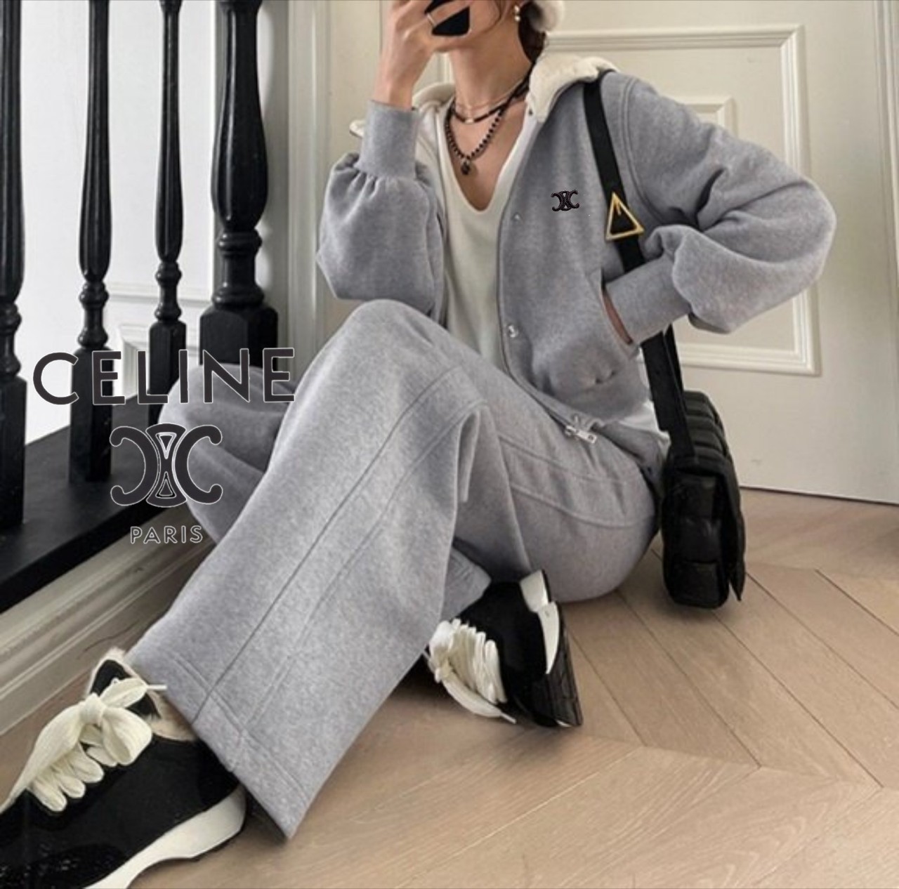 / [국내배송]셀린느 자수로고 델라 후드 투피스-기모