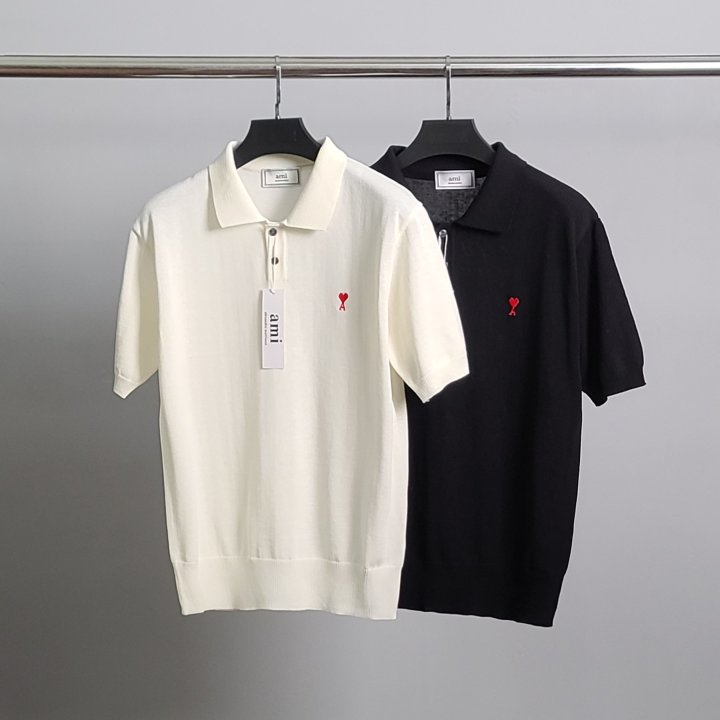 / [국내배송]아미 스몰하트자수 린넨 반팔 카라 니트