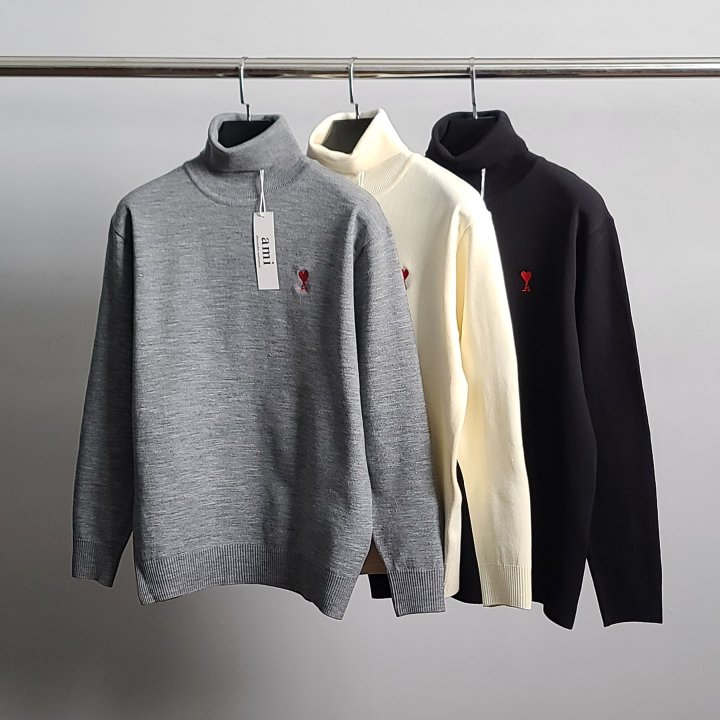 / [국내배송]아미 스몰하트자수 터틀넥 니트