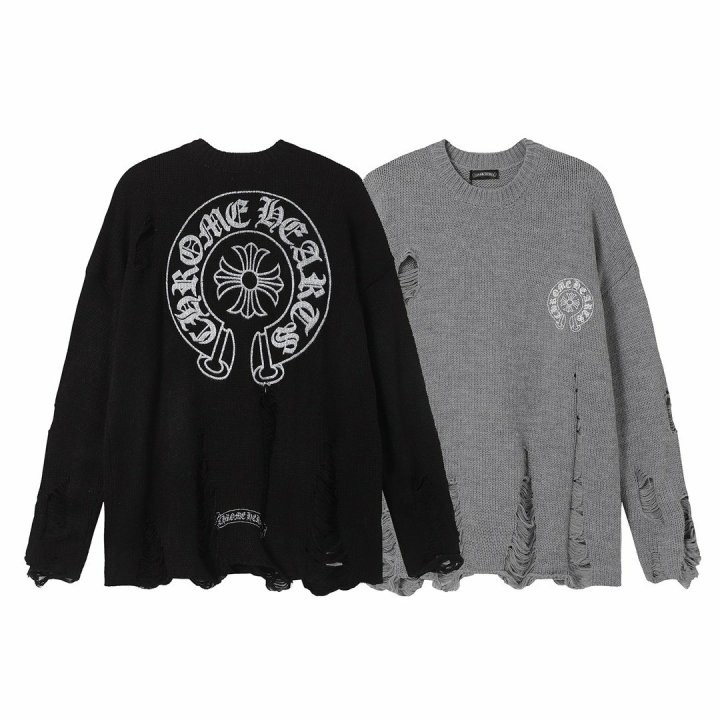 / [국내배송]크롬하츠 로고나염 데미지 니트