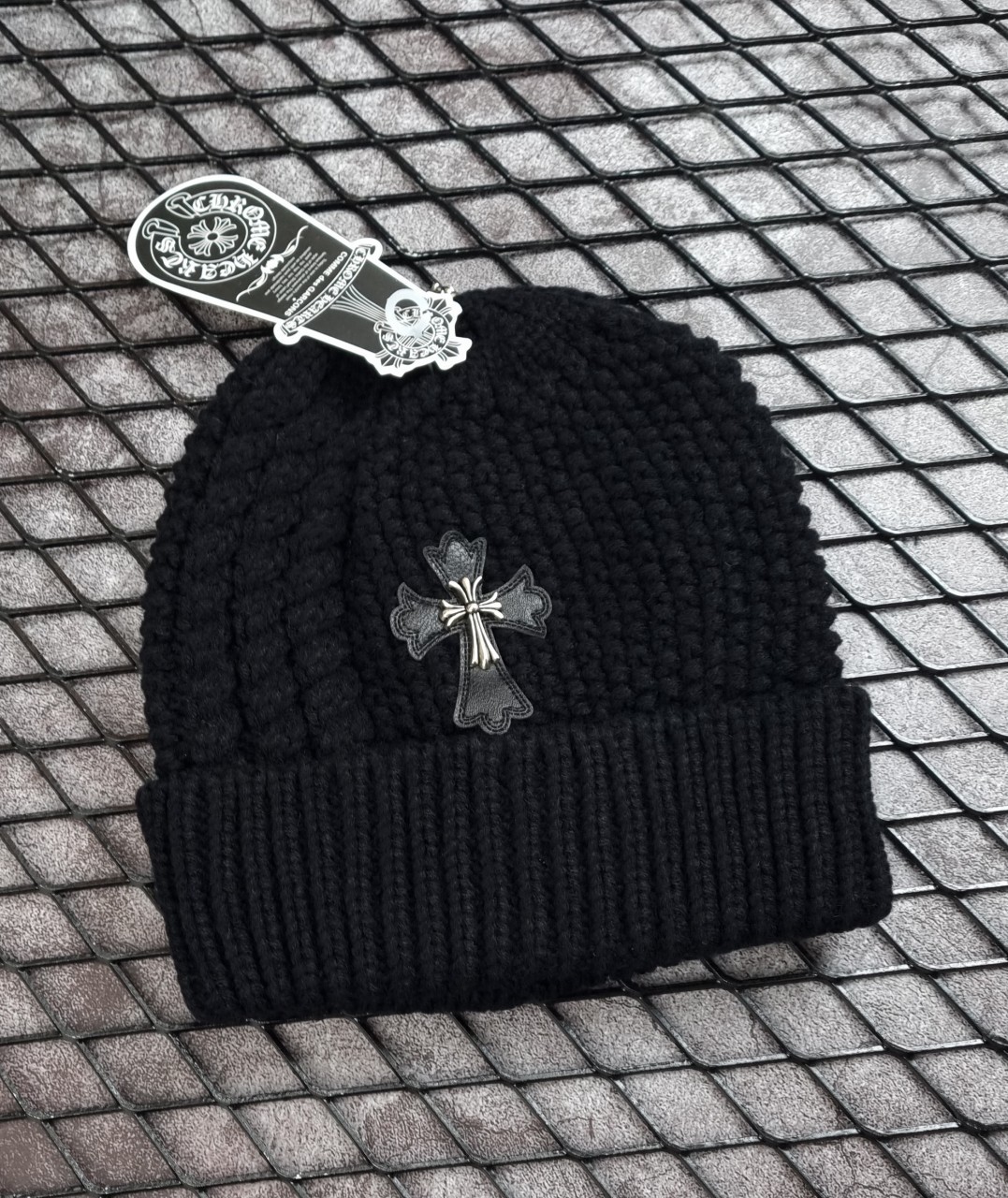 / [국내배송]크롬하츠 크로스 레더패치 꼬임울 비니