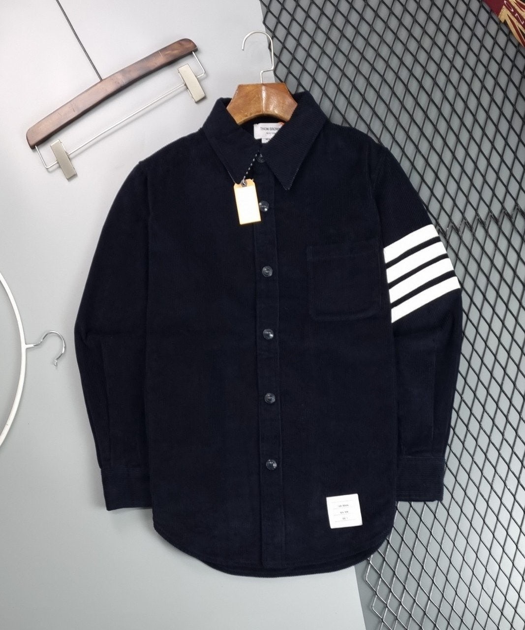 / [국내배송]톰브라운 가먼트다이 코듀로이 사선완장 프론트 셔츠자켓 (11월 10일까지만 판매)