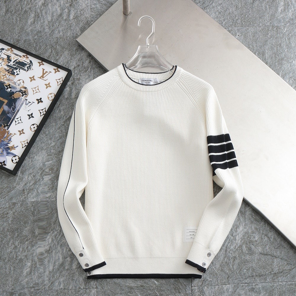 [국내배송]톰브라운 신상 사선 넥배색 양모 라운드